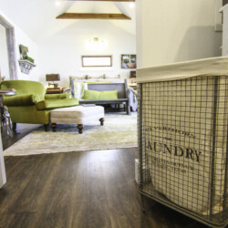 Available was an amazing rental called the “Silverthorn”.Perched up on a hill and secluded among the trees, this place came with an amazing view of the valley (and horses) below!