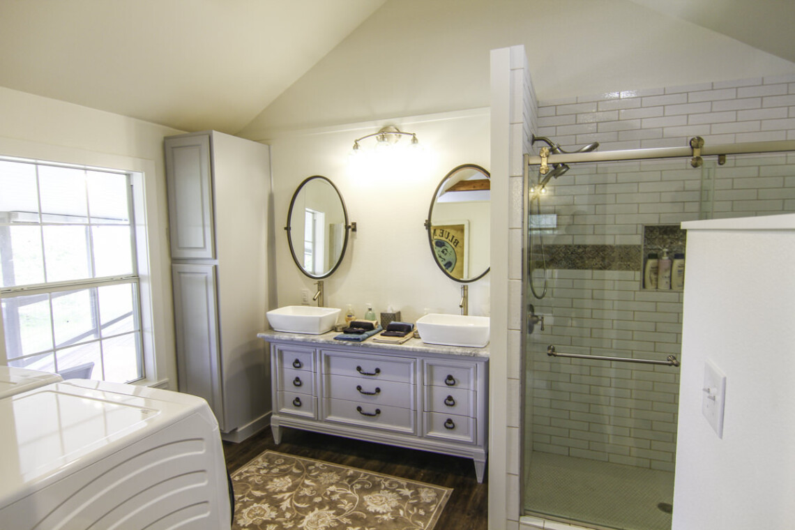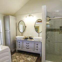 The Master Suite contains a King sized bed, big screen TV, armoire for your clothing and personal items, a bath with shower, toilet, dual sinks, and full laundry.